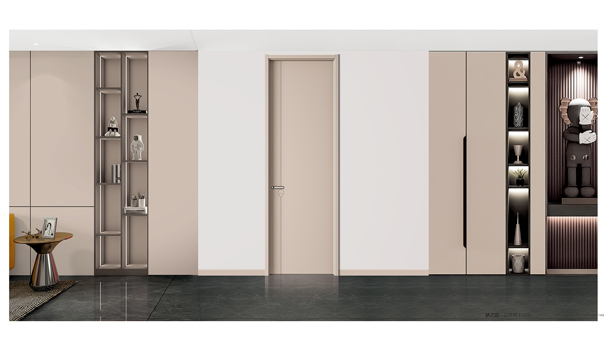 设计理念:极致简约的造型,高度的色彩凝练,将木门作为空间设计的入口,让木门、墙板、家具饰面效果一体化是家居空间的点睛之笔。